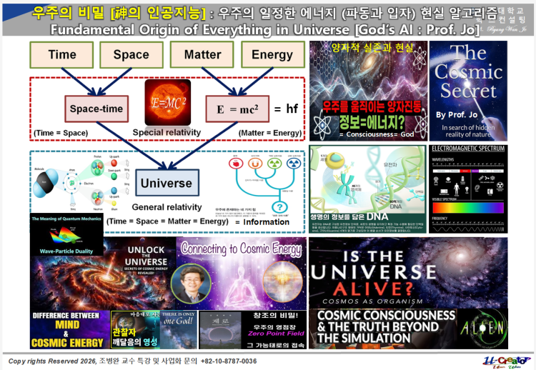 우주의 비밀[신의 인고지능]: 우주의 일정한 에너지(파동과 입자) 현실 알고리즘 Fundamental Origin of Everything in Universe[God's AI: Prof. Jo]