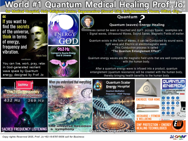 World #1 Quantum Medical Healing Prof. Jo for medical Hospital, Holy Religious Center, Regeneration(Eternal Life), Enlightenment, Home, Office, City...