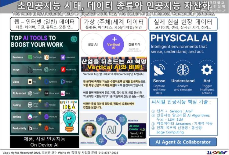 초인공지능 시개 데이터 종류와 인공지능 자산화 The more(Un/Structured) data in physical world has, The better AI (& Enhanced Humanoid) performs.