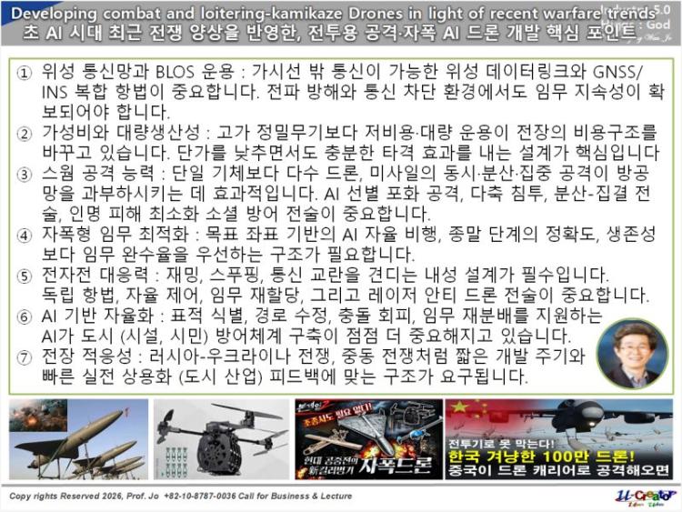 Developing combat and Ioitering-kamikaze Drones in light of recent warfare trends 초 AI 시대 최근 전쟁 양상을 반영한, 전투용 공격.자폭 AI 드론 개발 핵심 포인트
